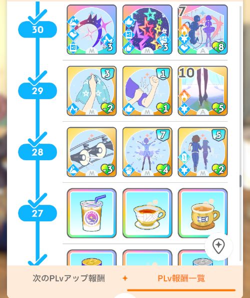 また、PLv30時点で追加されているスキルカードやPドリンクについて、