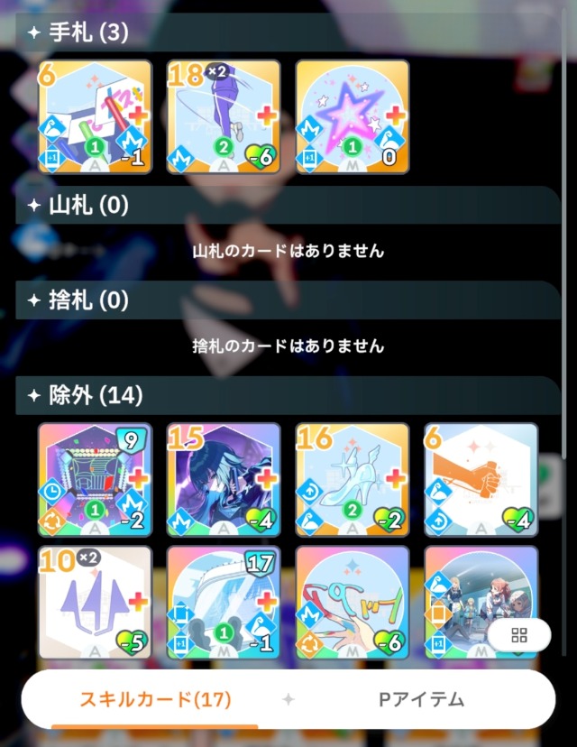 - [レッスン中1回]の記載がないスキルカードをデッキから削除していく
