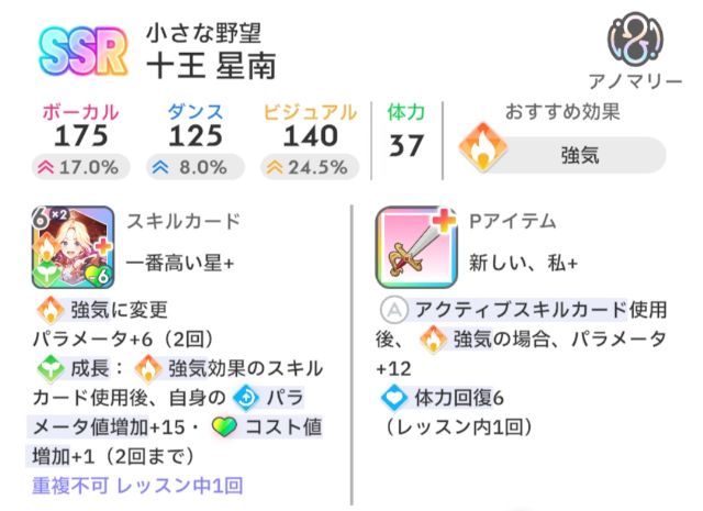 個人的に好印象や強気が使いやすい印象だったので差をつけたものの、どのアイドルもカード性能自体はぼちぼちかと。