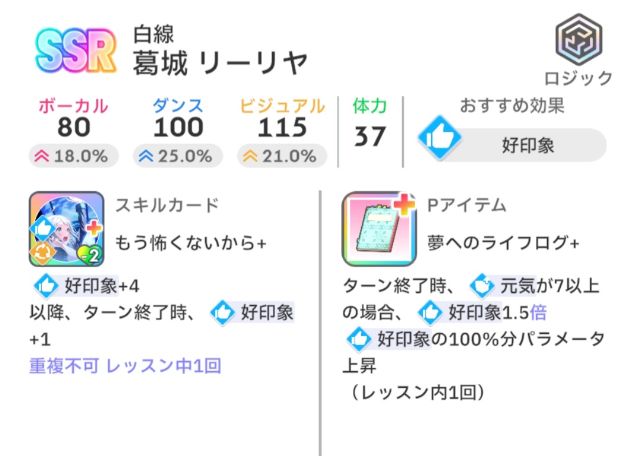 S…好印象、強気が使いやすい(ただし好印象は「輝くキミへ」が獲得可能になってからが本番)