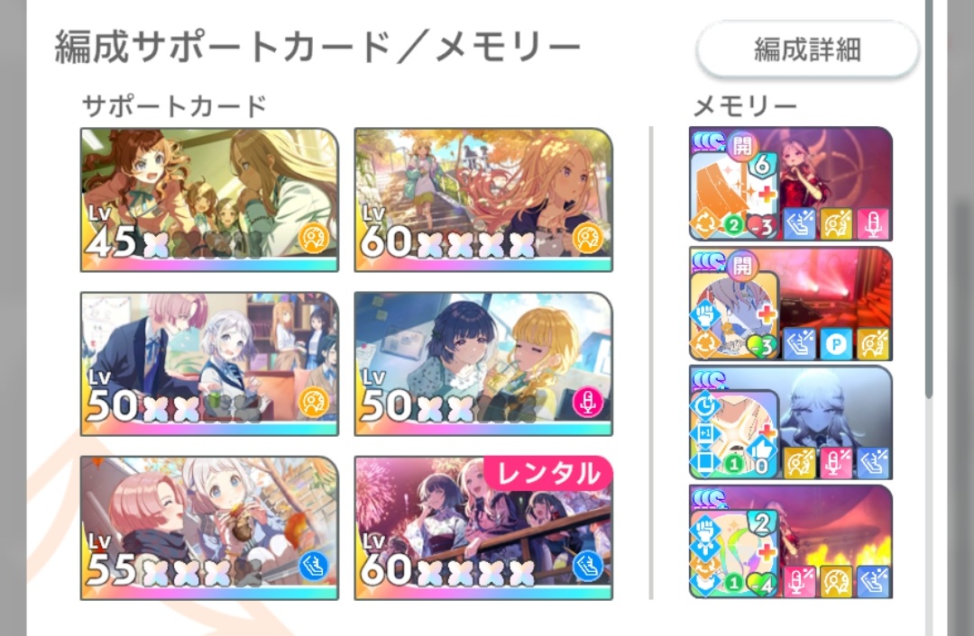 ここまで準備をしたら、この先はサポカとメモリーを編成する段階になります。