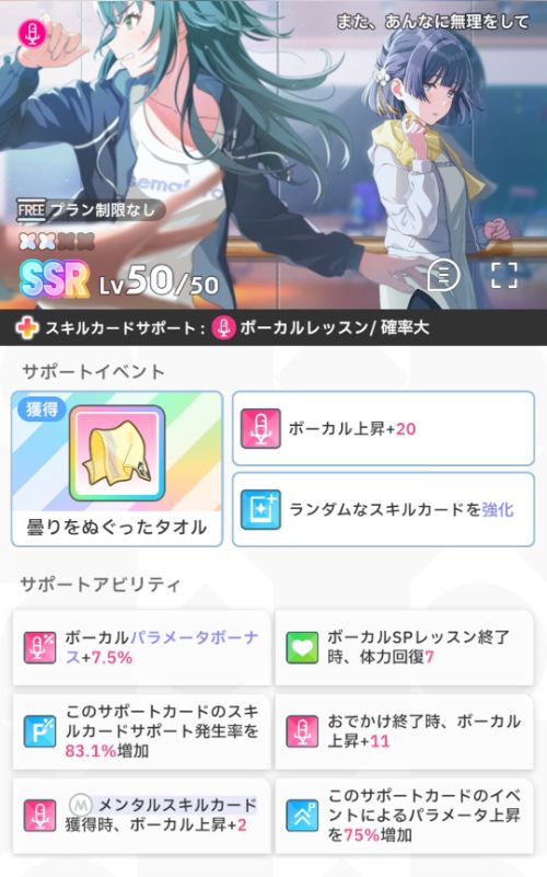 もし無課金でもランキング入りしたいとか、評価値を上げるための優秀なサポカを知りたいとかであればお力になれるかと。