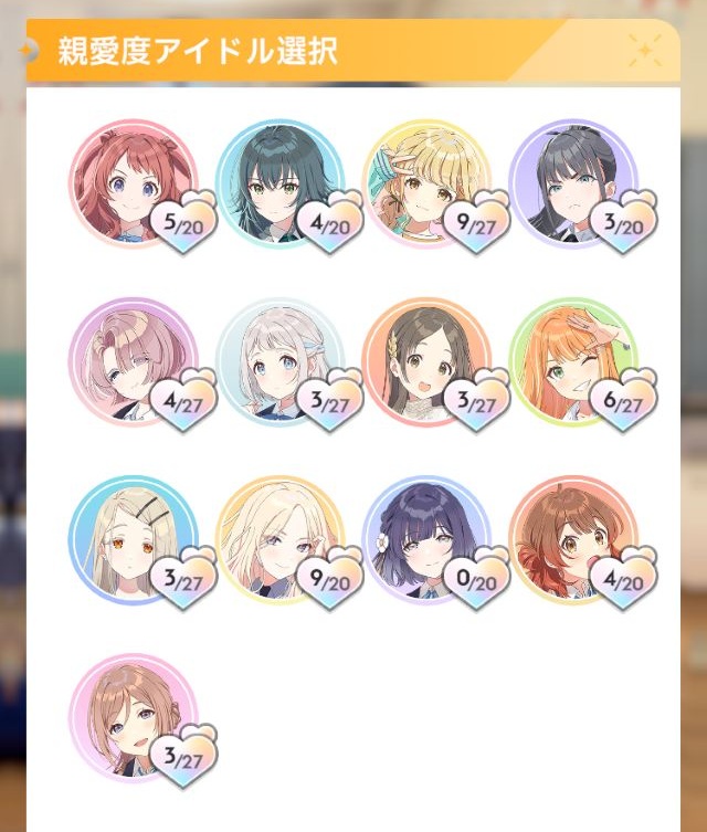 などで回収できるので、まだアチーブメントを回収してないアイドルがいればプロデュースや特訓を行って行きましょう。