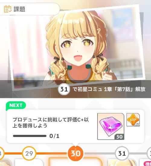 初星課題30からは評価C+以上を獲得する課題が発生します。