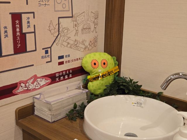 岩盤浴ゾーンの入口には店員(?)の私物アクスタ置き場が