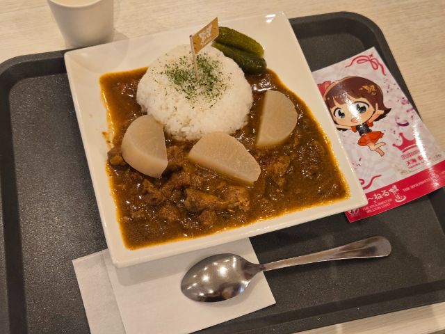 コラボカレーはこだわりの食材を使用した3種。写真の「天海春香の神奈川ほんわか大根カレー」はサウナや岩盤浴で弱った胃に優しいメニューでした